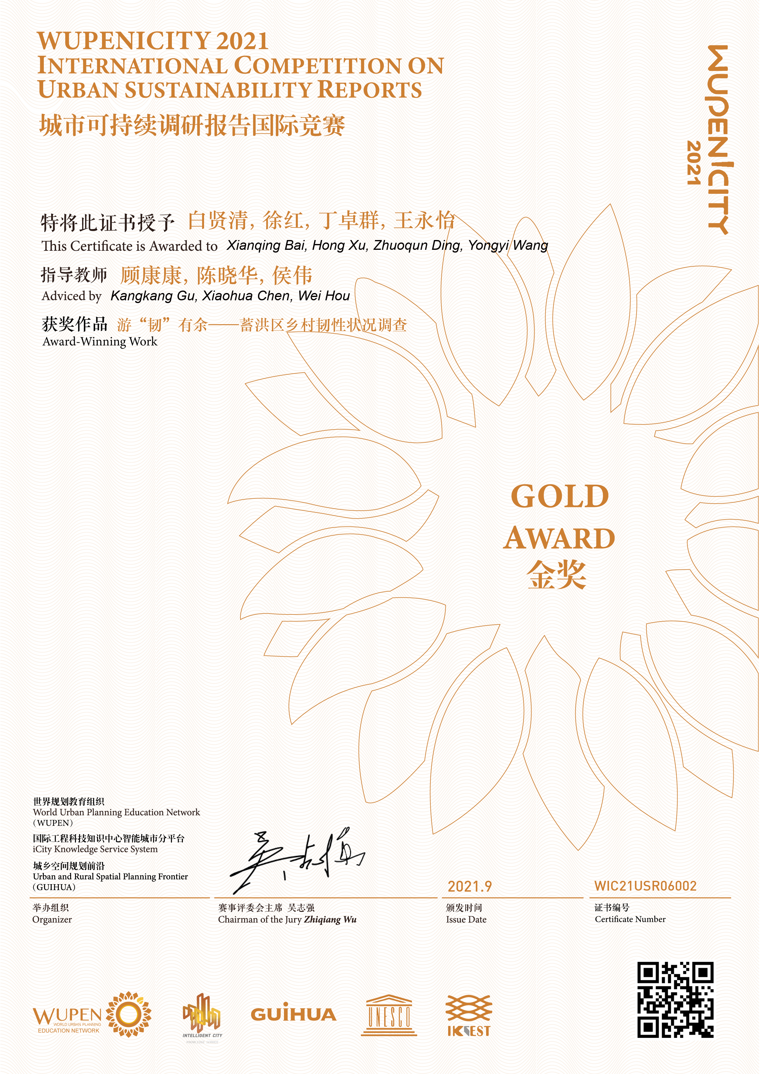 本网讯 9月21日“WUPENiCity2021城市设计及2021城市可持续调研报告竞赛”金奖名单公布,beat365建筑与规划学院积极组织学生参与竞赛,建筑与规划学院提交的多份作品中经过与诸多高校的激烈角逐,最终我院四组参赛团队从758份作品中脱颖而出,获得2021城市可持续调研报告竞赛金奖2项,提名奖2项的佳绩。