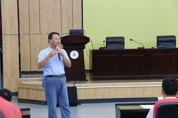 导师代表冀凤全教授以“不将就,心在山水间”为题,提出对新生的殷切期望,希望同学们学好专业知识的同时做好学习计划,珍惜时间,胸怀家国,追逐梦想,做一个有志向的研究生。