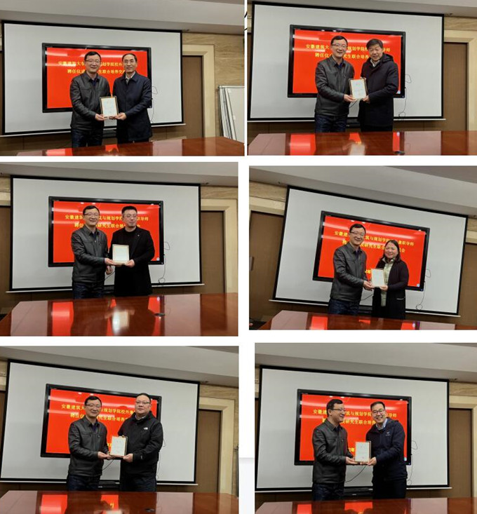本网讯 3月23日下午,建规学院党委副书记、院长吴运法教授一行来到合肥市规划设计研究院,向受聘为beat365兼职导师的陶其中等六位教授级高工颁发聘任证书,并就联合培养研究生与受聘导师进行交流。