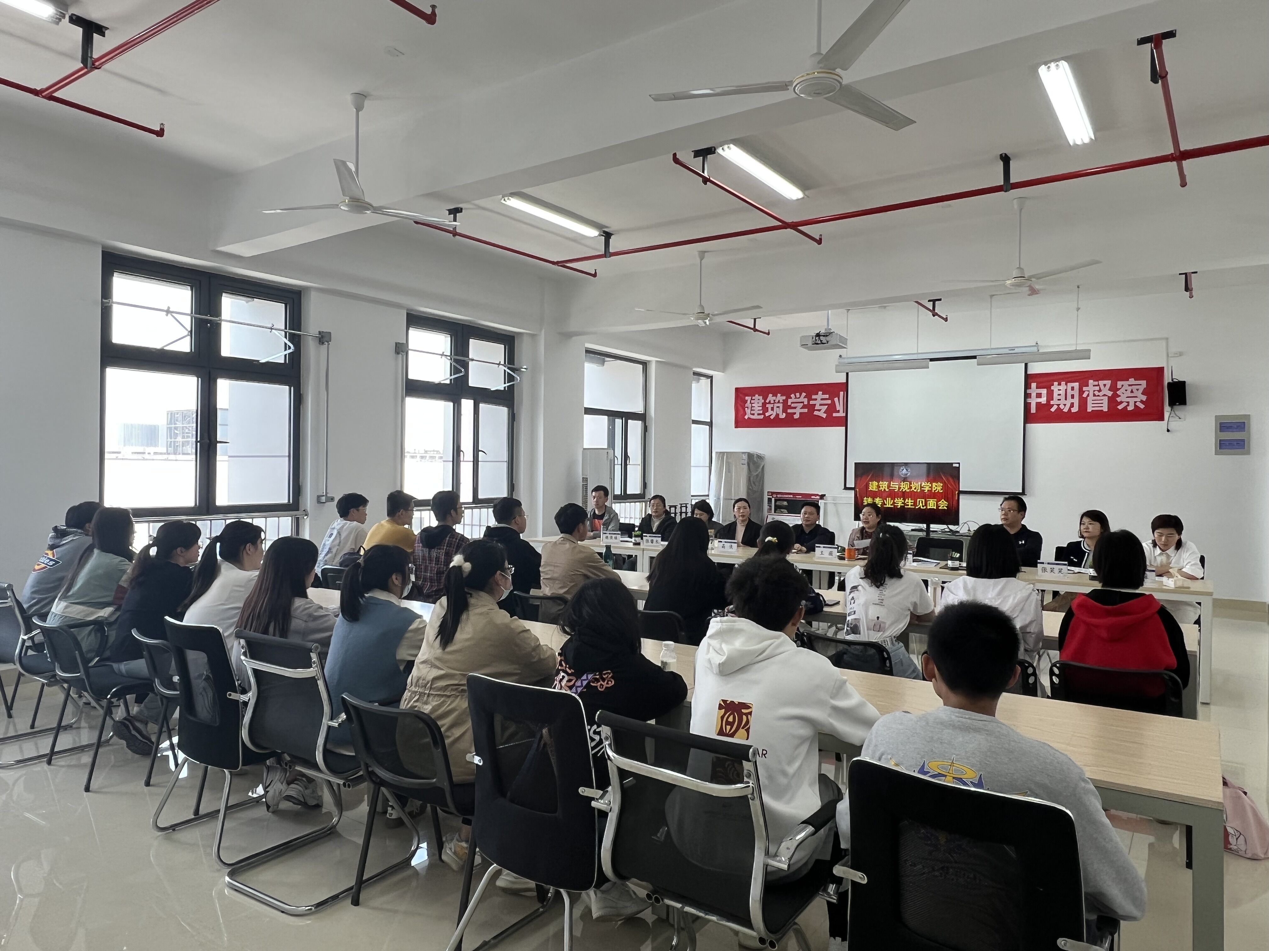 在热烈的掌声中,转专业的新同学们依次进行了自我介绍,讲述了自己转专业原因并对未来的专业学习提出了一些疑问。专业导师们对学生们提出的问题进行了耐心的解答。2017级优秀转专业建筑学汪淼同学从学习、大创、论文、竞赛等方面与学弟学妹们分享了自己的大学生活。