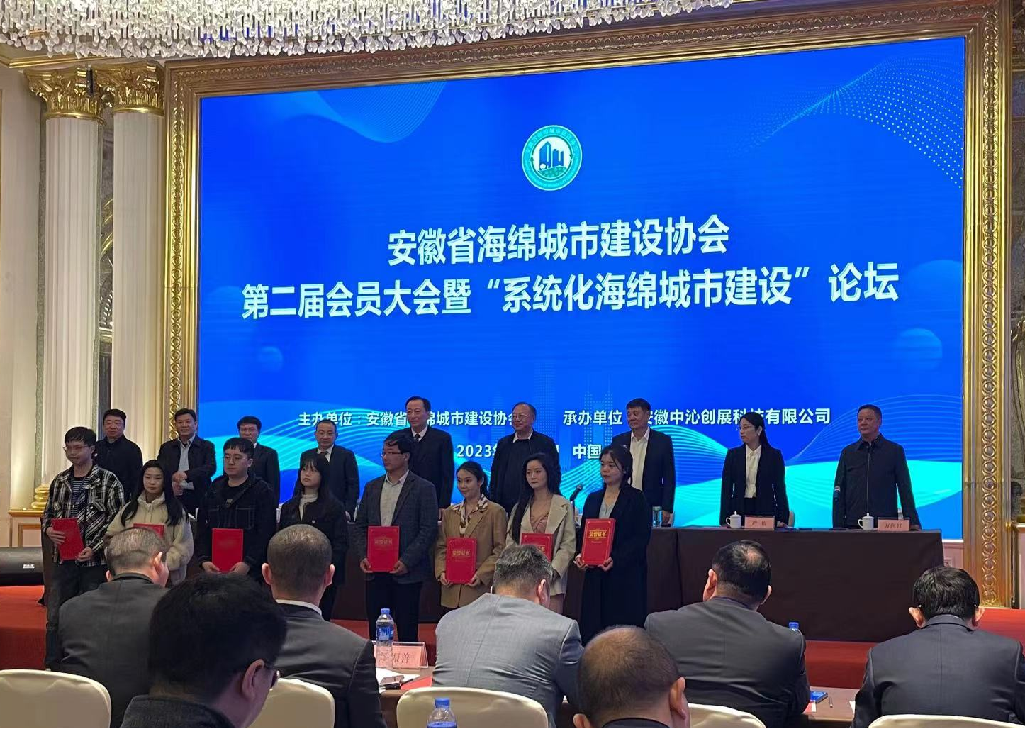本网讯 3月31日,安徽省海绵城市建设协会(以下简称“省海绵城市协会”)第二届会员大会暨“系统化海绵城市建设论坛”在合肥召开,省住房城乡建设厅、省社会组织管理局领导到会指导,校党委常委、副校长、省海绵城市协会会长蔡新立主持会议。会议表彰了2022年度安徽省海绵城市建设优秀成果、优秀论文、优秀会员单位和先进协会工作者,并向获奖单位及个人现场颁发了获奖证书。