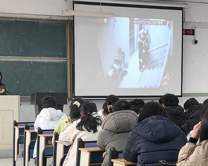 班会上,辅导员带领大家了解校园火灾发生的原因和危害,普及宿舍用电常识,特别强调校园内电动车充电规范的重要性。消防安全是关乎学生生命安全的重要议题,结合视频,同学们直观感受到火灾发生瞬间的触目惊心,并认真听取了老师讲解的火灾应急处理与逃生方法,做好相关的防范知识储备。