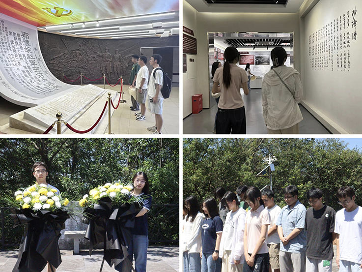 团队赴六安苏家埠战役纪念馆开展主题党日活动。在苏家埠战役纪念碑前举行默哀仪式并敬献花篮,追思革命先烈。随后,师生共同参观数字化改造后的陈列馆,体验红四方面军“围点打援”战术的精妙之处与革命智慧。团队还在纪念馆前拍摄“历史名场面转场”短视频,以青春视角演绎革命热血场景。