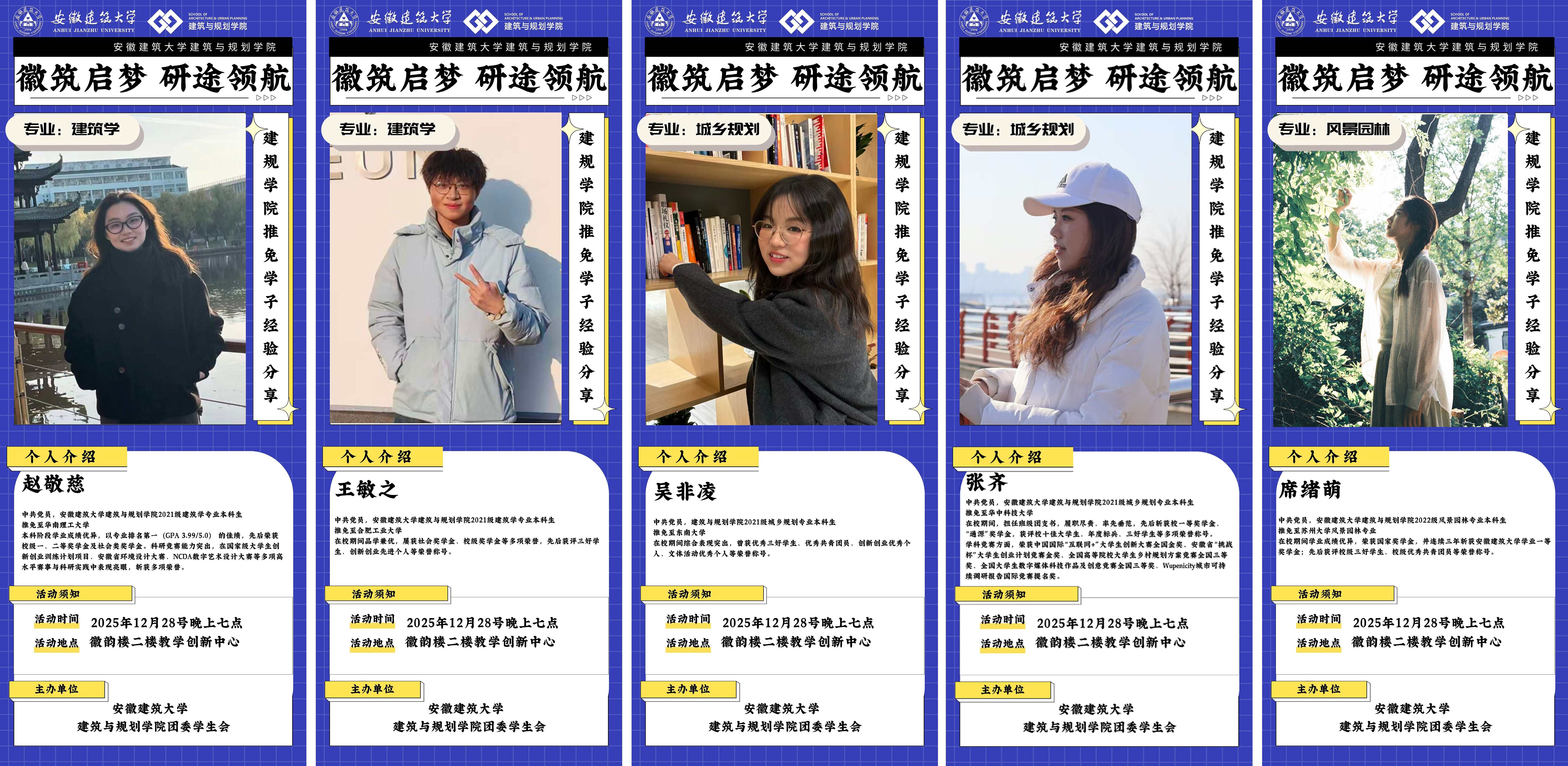本网讯 12月28日,建筑与规划学院举办“徽筑启梦 研途领航”推免学子经验分享沙龙。本次活动紧扣建筑类学科人才培养特色,以党员领航、朋辈示范为抓手,旨在为志在升学深造的低年级团员青年明晰发展方向,积累保研实战经验,搭建交流互鉴、共同进步的优质平台。