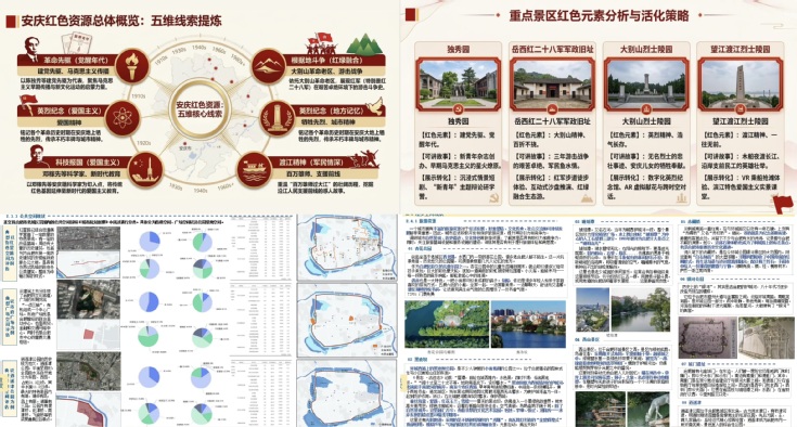 此次实践紧扣城乡规划专业特色,强化思政教育,让党员同志们在文化资源挖掘保护中深化专业理解、提升实践能力。并以沉浸式寻访、专业化解读、创意化转化、系统化落地为核心,将空间分析、场地营造、资源活化等专业能力充分运用到文化资源挖掘与保护传承全过程。在黄山屯溪,党员从空间策略、功能复合、选址智慧等角度,剖析徽派建筑中将文化属性“藏于日常”的隐蔽性特征,提出优化标识系统、打造“红色初心步道”等规划建议;在合肥磨滩特色文化街区,党员结合专业设计“红绿融合”研学路线,探索革命文化与乡村振兴、城市文旅的融合路径;在亳州,党员深入曹操地下运兵道,从建筑规划视角解读这一“地下长城”的工程价值与历史意义,为文化遗产活化利用提供专业思路;在安庆,党员提炼“革命先驱、渡江精神”等五大资源线索,设计数字化展示转化方式,让红色文化实现现代化表达。大家通过实地测绘、空间分析、方案设计,形成多份高质量调研报告、规划设计方案与党建活动策划,用图文、手绘、视频等多元形式完成成果展示,实现了“发现红色资源—解读空间密码—提炼精神内核—设计活化方案—传播红色文化”的完整闭环。