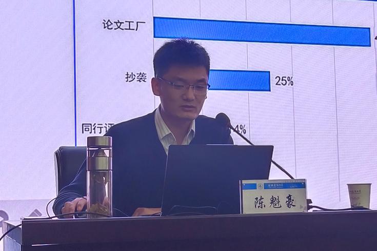 本网讯为进一步弘扬科学家精神,营造风清气正、求真务实的良好科研生态,12月12日上午,学校在徽风楼二楼报告厅举办科研诚信辅导讲座,邀请宁波大学陈魁豪教授作题为《严守诚信底线,做负责任的科研》的专题报告,陈魁豪教授曾任国家自然科学基金委员会科研诚信建设办公室流动编制项目主任。校党委常委、副校长王佐才主持会议。各学院相关领导、近三年新进博士、在站博士后、科研平台负责人、创新团队负责人、教师代表,科学技术处、科技成果转化处、发展规划处、人事处相关人员参加本次会议。