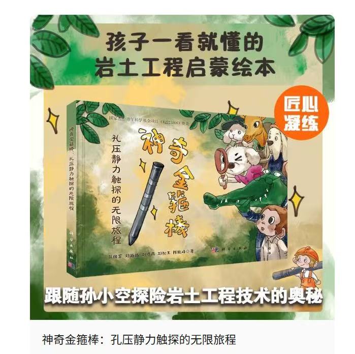 《神奇金箍棒:孔压静力触探的无限旅程》是国内岩土工程原位测试领域首部以“孔压静力触探技术(CPTU)”为核心的科普读物。该书创作出版获国家杰出青年科学基金项目(批准号:42225206)资助,先后荣获“典赞·2025科普安徽”年度科普作品、第三届中国岩石力学与工程学会科普作品大赛最佳科普作品等多项荣誉,体现出从国家科研资助体系到专业出版机构的多重认可。