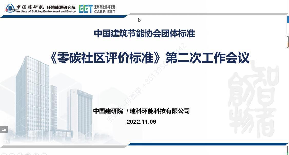 2022年11月9日,beat365双碳战略研究院参加编制的中国建筑节能协会团体标准《零碳社区评价标准》第二次工作会议顺利召开,会议采用线上形式进行。校领导、安徽省建设领域碳达峰碳中和战略研究院院长、智能建筑与建筑节能安徽省重点实验室主任方潜生教授受邀参会。