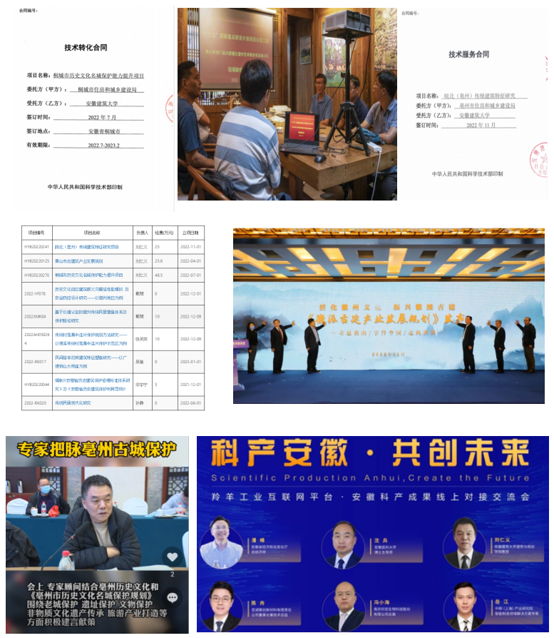 实验室核心团队紧密围绕历史文化保护和徽派建筑特色研究,出色完成了“十三五”重点研发计划子课题“传统村落活态化保护利用的关键技术集成示范”(2019YFD1100904),有序推进安徽省高校协同创新项目“徽州文化传承与徽州传统建筑营造技艺革新路径与机制研究”(GXXT-2020-035);助推并以实际行动践行校政战略合作,先后主持完成《徽派古建产业发展规划》编制,并在“第二届中国黄山古建产发展大会”上公开发布;成功实现《桐城市历史文化名城保护能力提升项目》技术转让;签订并实施《皖北(亳州)传统建筑特征研究》技术服务合同;作为项目培育,新增地厅级以上项目6项;指导完成“绩溪县传统村落集中连片保护示范县规划”编制和策划实施“绩溪国家历史文化名城古城复兴项目”,直接促成学校与绩溪县人民政府战略合作协议签订。同时参与和指导全省各地历史文化保护传承工作计划制定和实践项目。实验室积极推广相关研究成果——在羚羊工业互联网平台发布“beat365在线唯一官网徽派传统聚落与古建筑保护传承关键技术研究及应用”等,精准服务地方经济建设。