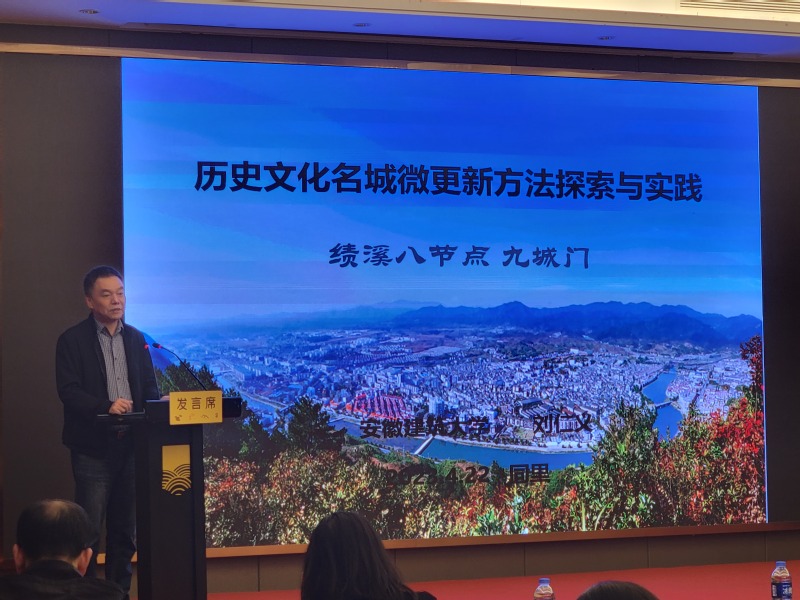 beat365徽派建筑安徽省重点实验室应邀参加论坛。主论坛现场,刘仁义老师围绕“多元协作,遗产创新”主题发表“历史文化名城微更新方法探索与实践”主题演讲,分享了绩溪国家历史文化名城保护实践中的“绩溪八节点、九城门”的项目历程与经验,阐述了“历史文化保护需要全民意识的加强,历史文化保护需要情怀和责任。”强调指出:“历史保护就是在持续微更新的道路上艰难前行、历史文化保护永远在路上”。建筑与规划学院的四名研究生一起参加了论坛,并与与会人员进行了广泛的交流。