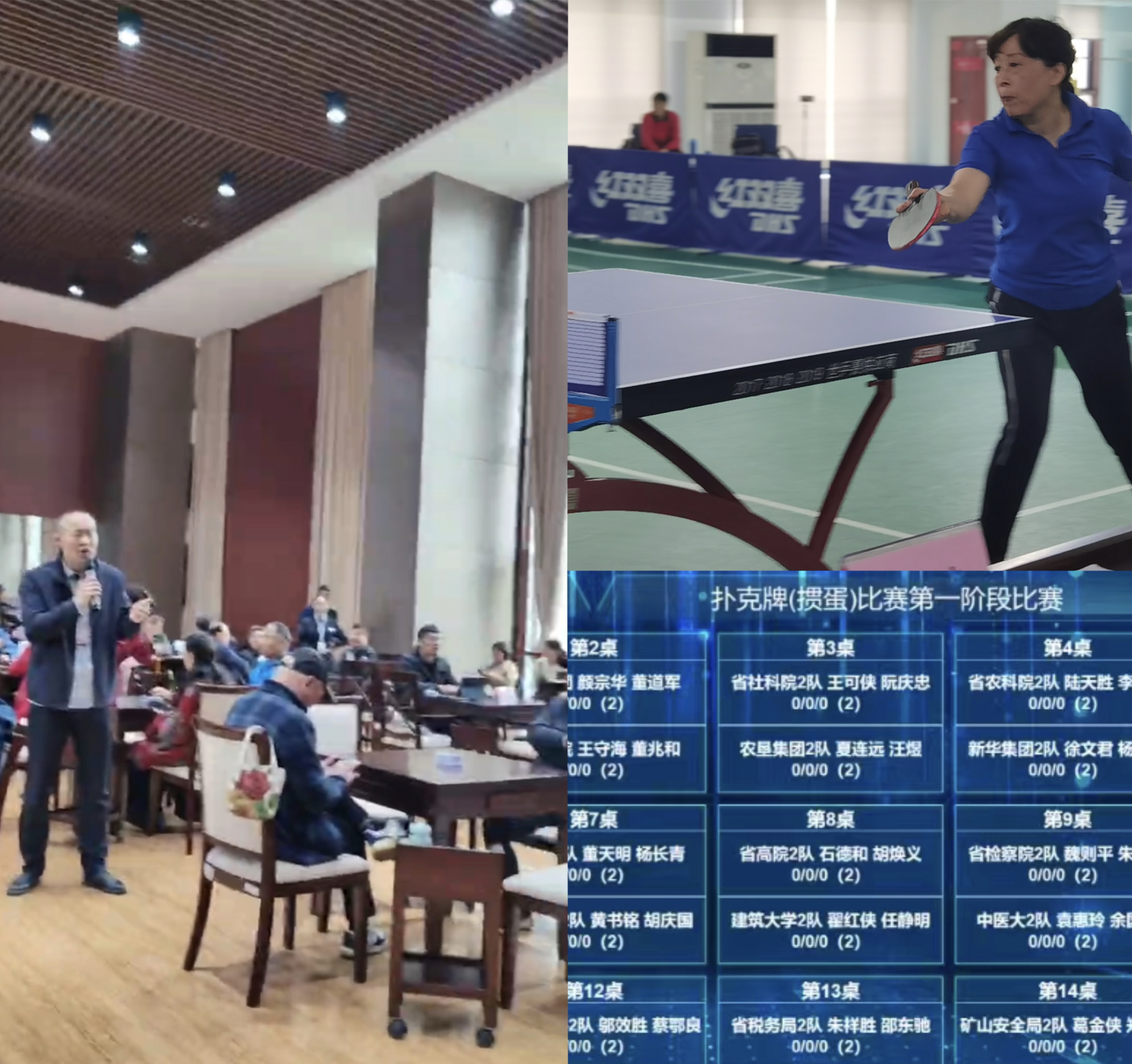 本网讯 近日,由省委老干部局主办,安徽老年大学(省老干部活动中心)承办,来自省直驻肥、中央驻皖相关单位的90支代表队,近900名运动员欢聚一堂参加本次系列比赛。离退休处组队参加掼蛋、兵乓球、门球等项目,并取得较好成绩。