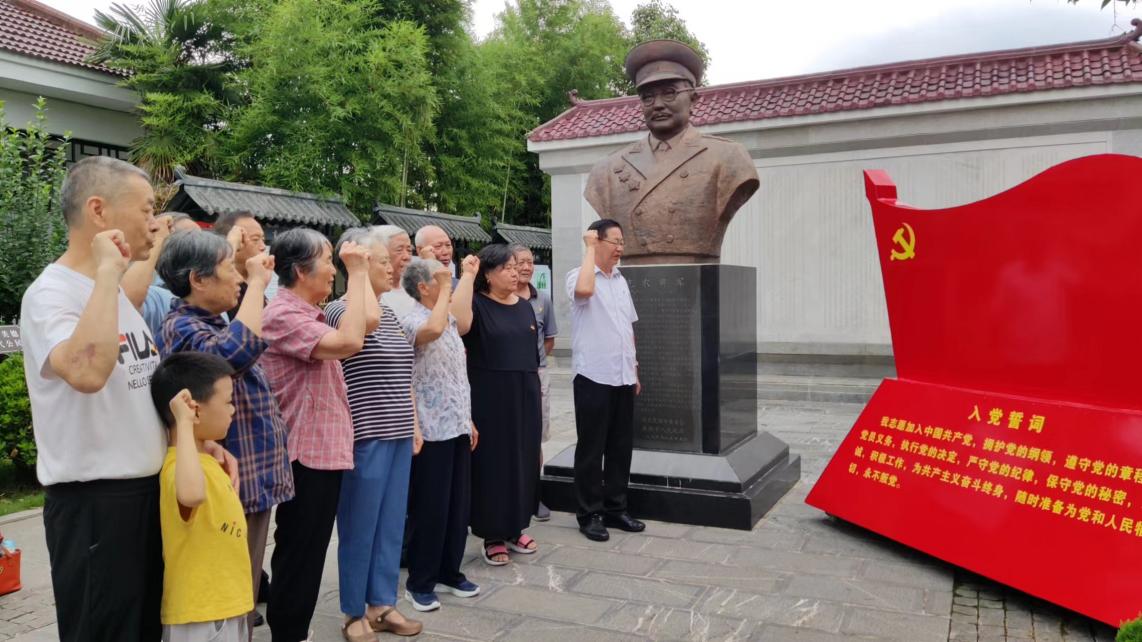 随后,在李克农将军的塑像前,参加活动的全体党员列队宣誓,重温入党誓词,在党旗的见证下,全体党员干部重温了自己对党忠诚的铮铮誓言,表达了“不忘初心、牢记使命”的信念和决心。