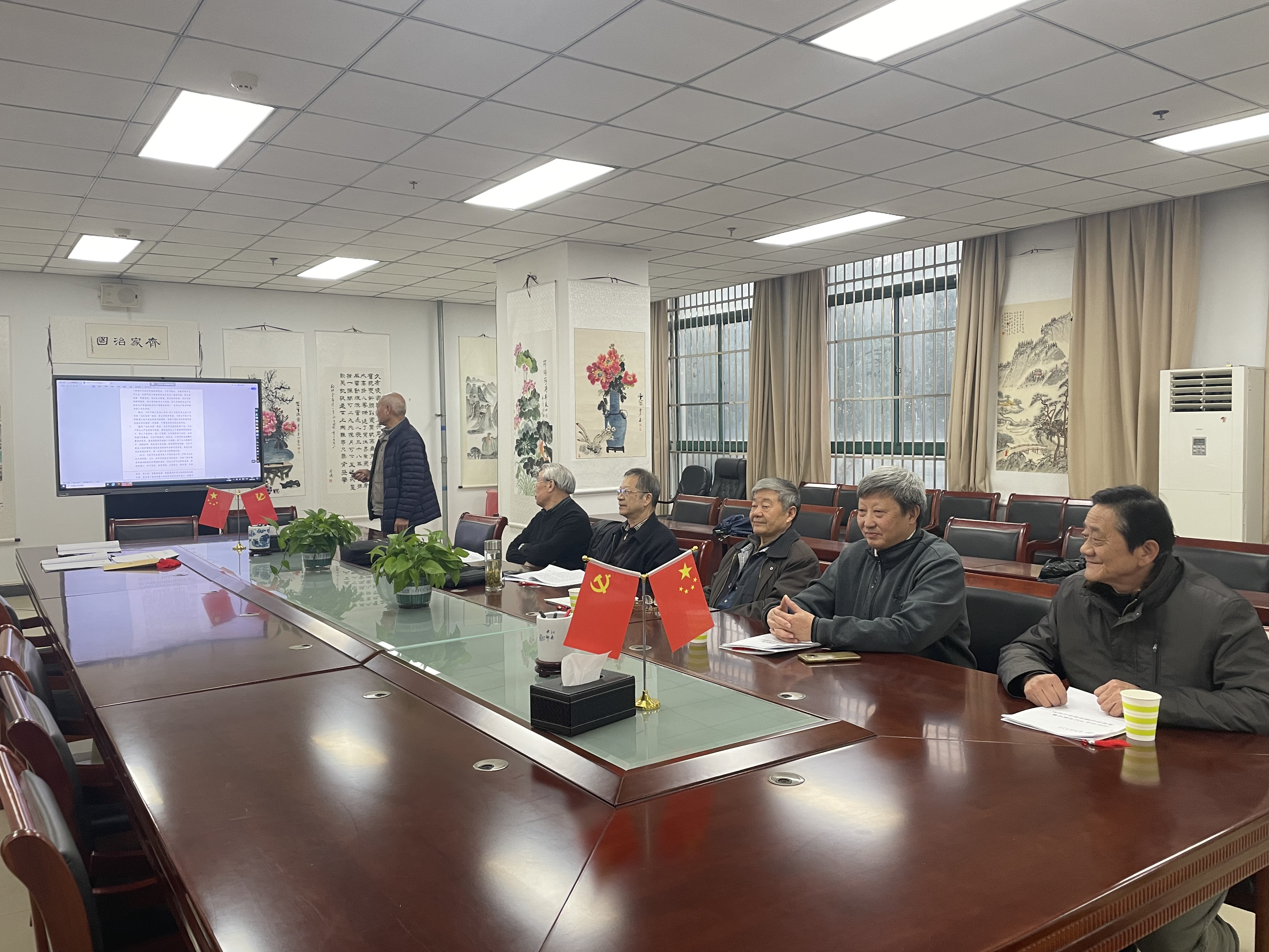 本网讯  近日,离退休第一党支部在离退休处202会议室召开理论学习主题党日活动,围绕习近平总书记考察安徽重要讲话和党的二十届三中全会精神开展学习研讨。会议由离退休第一党支部书记祝杰主持,支部委员及部分党员参加学习会。