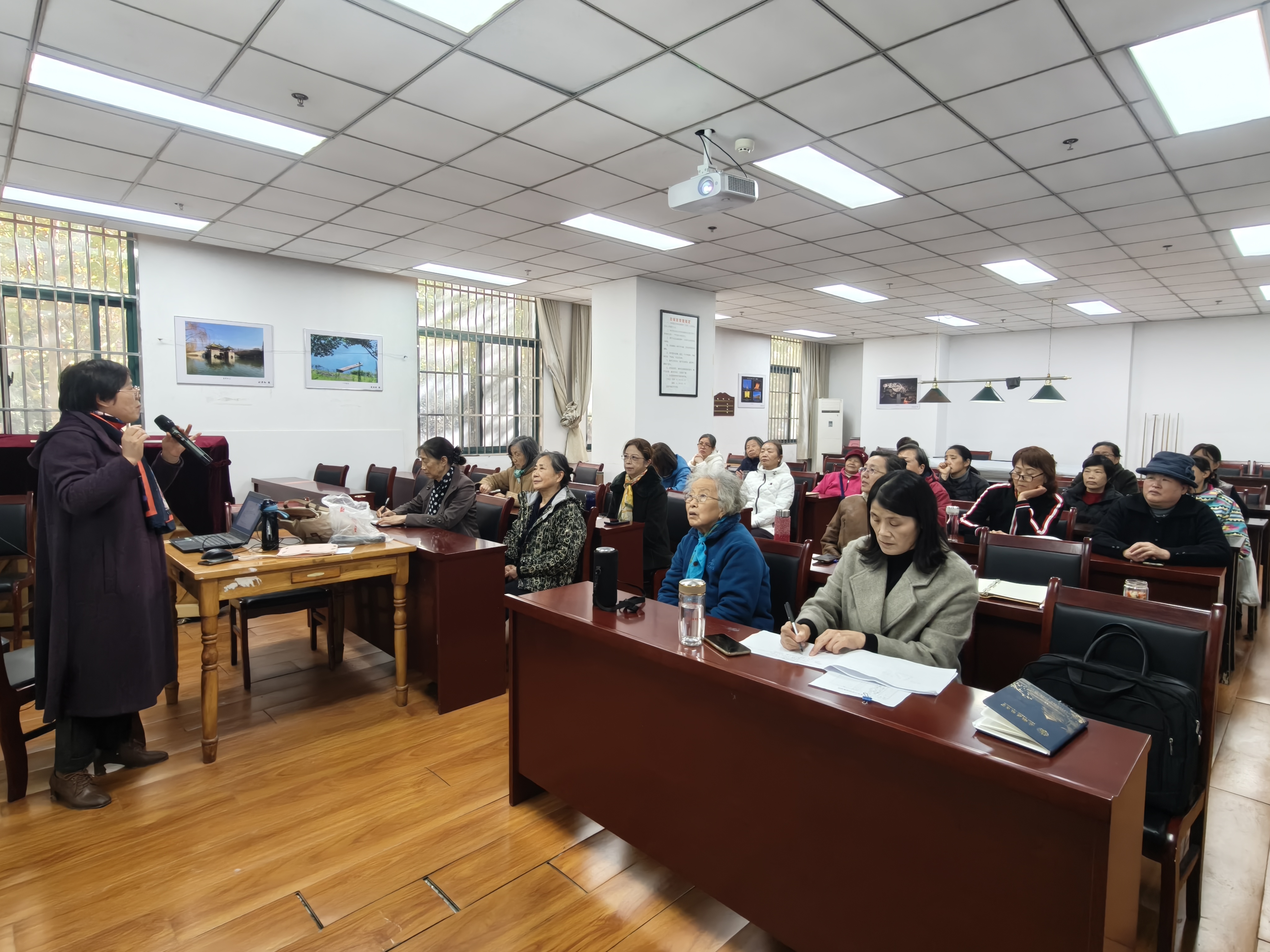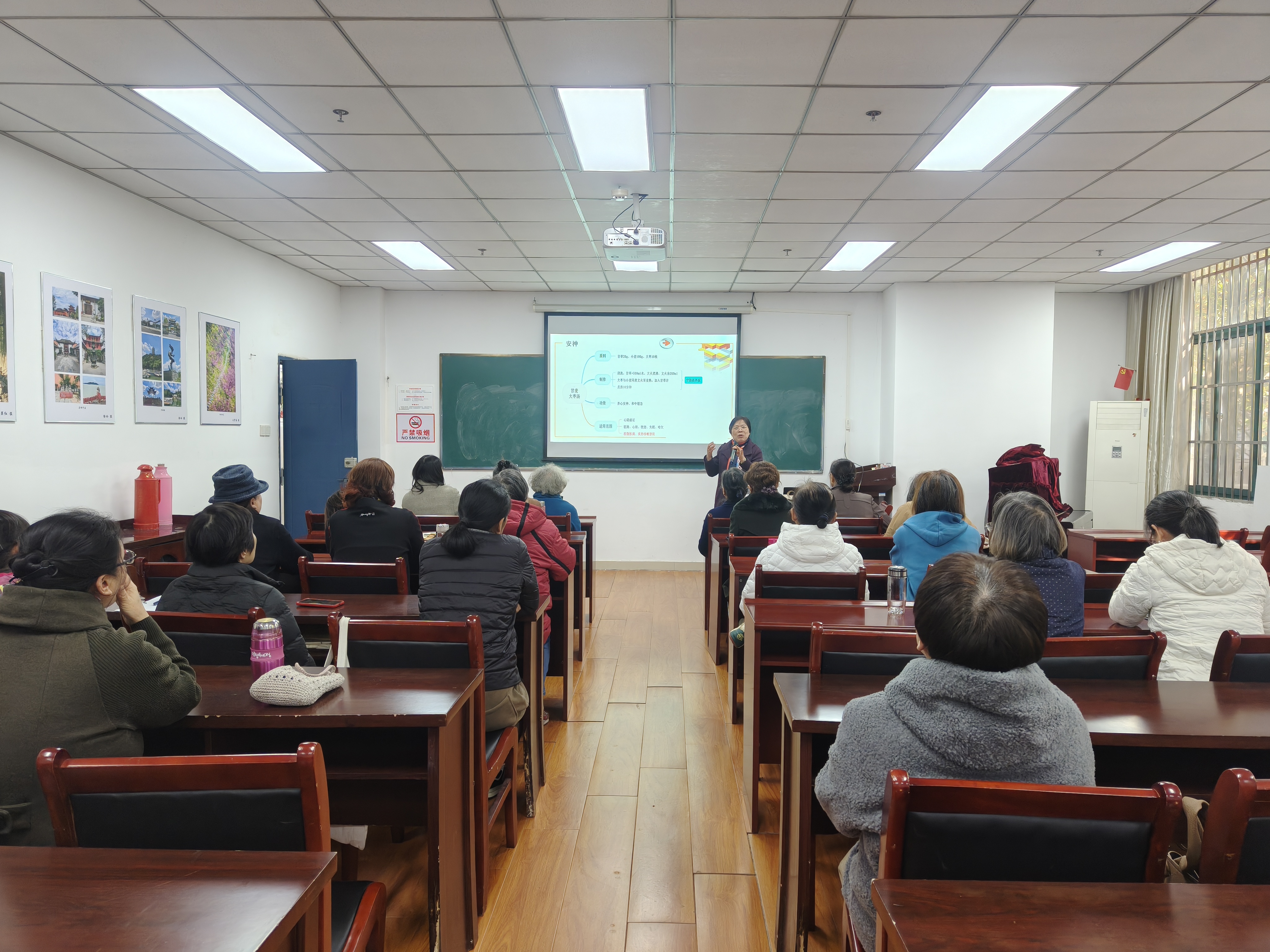 本网讯 为关爱离退休老同志身心健康,传播科学养生理念,2025年11月18日,一场题为“老年养生保健药膳食疗”的专题讲座在离退休处217教室成功举办。本次讲座特邀安徽第二医学院赵正梅副教授主讲,二十余位老同志参加讲座。