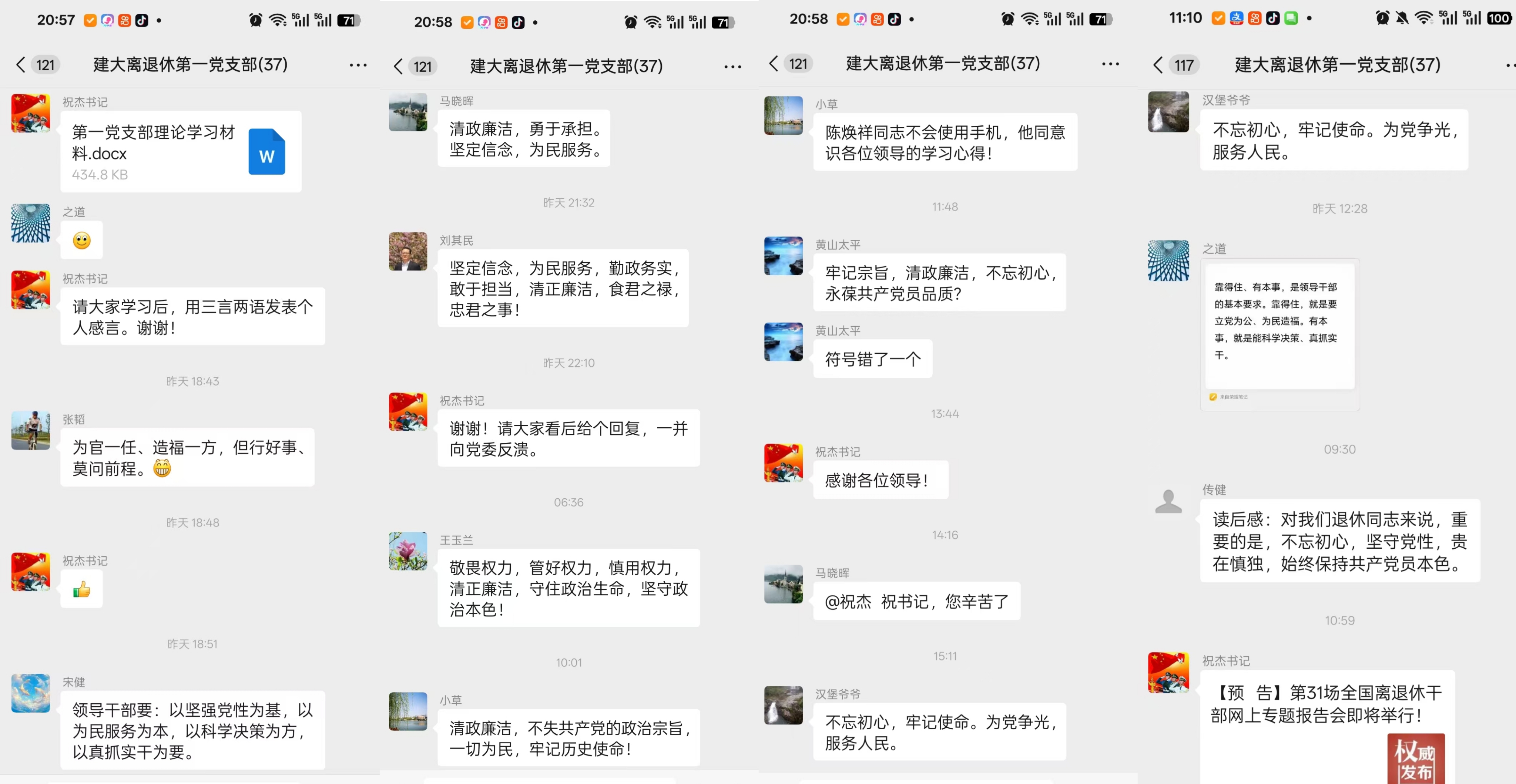 在交流发言环节,老同志们踊跃分享学习体会,一致认为要始终不忘初心、牢记使命,做到清正廉洁、为民服务。虽然退休,仍要以坚强党性为基、以为民服务为本,在力所能及之处发挥余热,为党和人民的事业增添正能量。(文/图:吉晓婷;一审:吉晓婷;二审:赵巧云;三审:汪涛)
