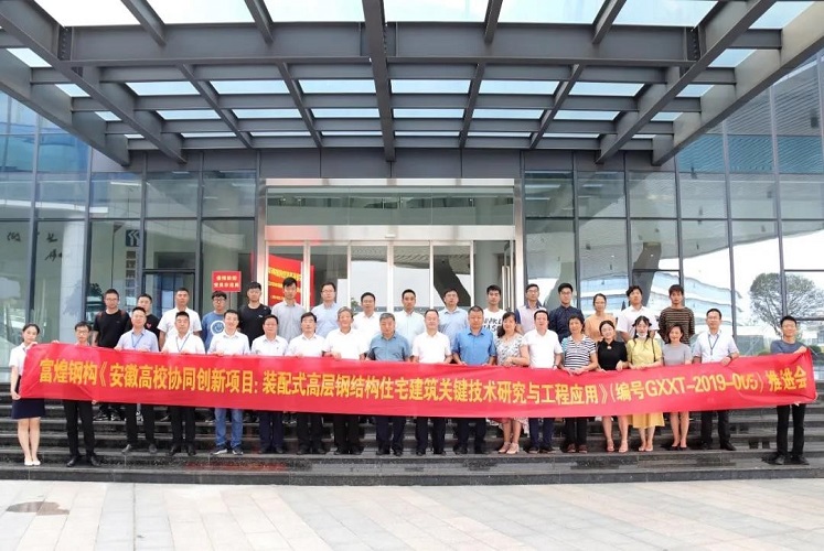 依据安徽省教育厅《关于大力推进高校协同创新融入“四个一”创新主平台建设的意见》(皖教科〔2018〕7号)的文件要求,为推动高校协同创新,提升服务能力,促进科技成果转移转化,充分发挥高校基础理论在工程实践中的指导作用,加大企业在重点行业领域发展中的技术突破能力,本次推进会全省4所高等院校与富煌钢构深度融合,解决针对装配式钢结构建筑的工程实际技术问题,形成校企“一对一”技术研发与工程实践“常态化”创新合作模式,将富煌装配式钢结构住宅技术体系中的关键技术在深度与广度两方面进行技术拓展与延伸,更好地提高工程质量与经济效益,提升社会影响力,对我省稳步推进装配式钢结构住宅具有重要的战略意义。