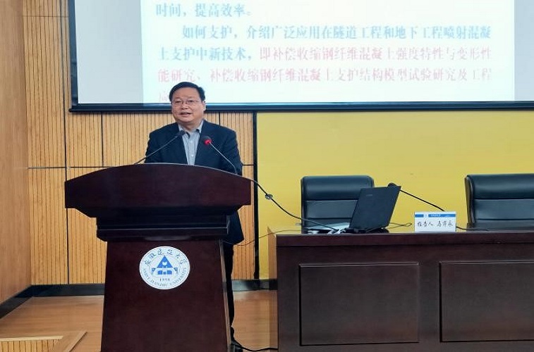 马芹永教授结合近年的研究向大家分享了硬岩爆破模型试验研究与振动测试技术,尤其是隧道进爆破大直径掏槽孔和小直径周边孔的组合爆破技术。介绍了所开发的补偿收缩铜纤维混凝上强度特性与变形性能研究、补偿收缩钢纤维混凝上支护结构模型试验研究成果。
