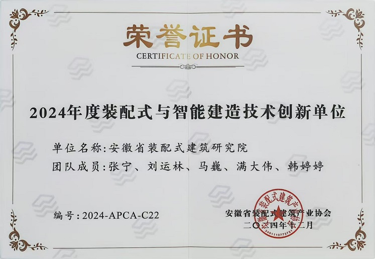 安徽省装配式建筑研究院获评“2024年度装配式与智能建造技术创新单位”;学院教师陈雷雨获评“2024年度建筑技术推广先进个人”。