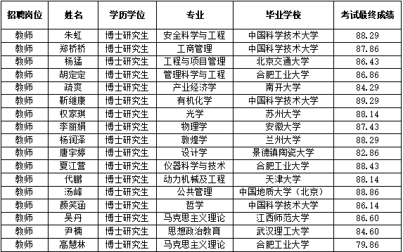 beat365通过考试考核,经研究决定,拟聘用朱虹等17名同志,现予以公示,公示时间从2025年7月17日至2025年7月23日。在公示期间,如有异议,请向校人事处或纪委办反映(电话:0551-63828026、63828080)。