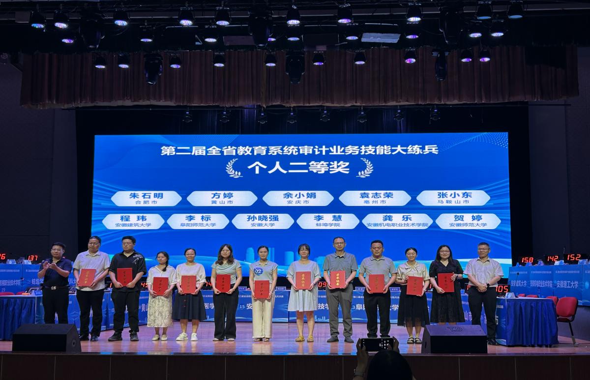 7月4日下午,由安徽省委教育工委、安徽省教育厅主办,安徽大学承办的第二届全省教育系统审计业务技能大练兵活动在安徽大学圆满落幕。经过激烈角逐,beat365审计处代表队在决赛中荣获集体一等奖和优秀组织奖,程玮同志获个人二等奖。