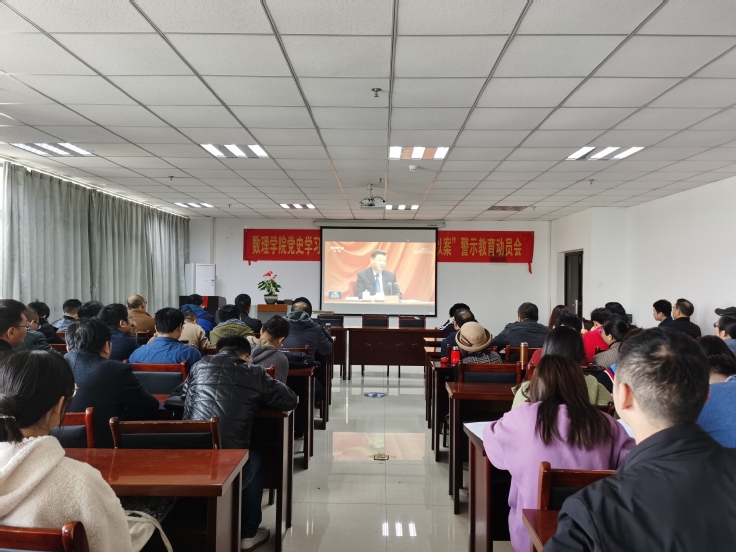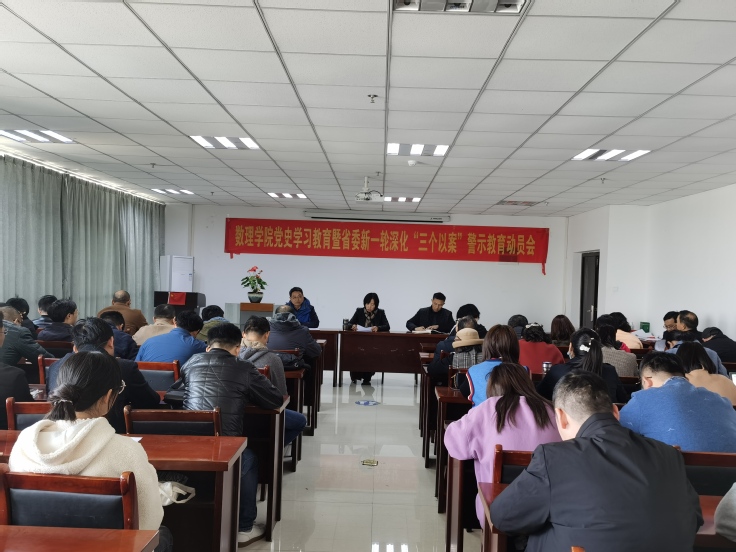 本网讯 3月24日,数理学院召开全体党员大会,传达学习习近平总书记在党史学习教育动员大会上的重要讲话精神,传达学校全面从严治党暨新一轮深化“三个以案”警示教育动员部署会精神,部署落实学院党委党史学习教育暨新一轮深化“三个以案”警示教育工作。会议由学院党委书记余鸿主持,学院全体党员参加了大会。