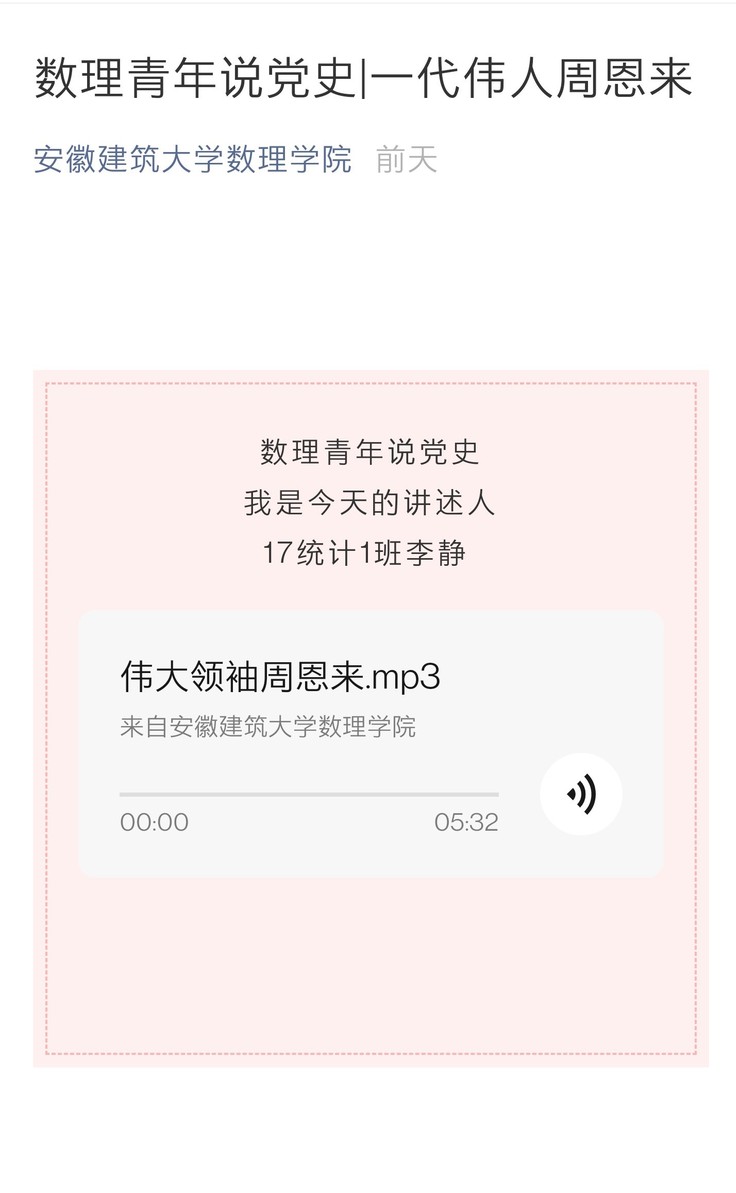 下一步公众号还将继续推出“数理青年说党史”“寻找家乡红色记忆”等一系列活动,进一步丰富线上党史学习教育内容和形式,促进红色基因传承,弘扬革命奋斗精神,砥砺初心使命,让学生争做时代新人。(作者:水天柱;审稿:徐华洋)