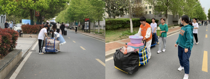 本网讯 3月30日下午,21级辅导员带领学生会志愿者在学生公寓与南大门前迎接10名转专业同学的到来。在老师的指引下,志愿者们积极主动地与新同学进行沟通,利用小推车帮助同学搬运行李、帮助他们找到自己的寝室。在志愿者们的热情帮助下,经过半个多小时的行李搬运,转专业同学顺利入住新寝室。