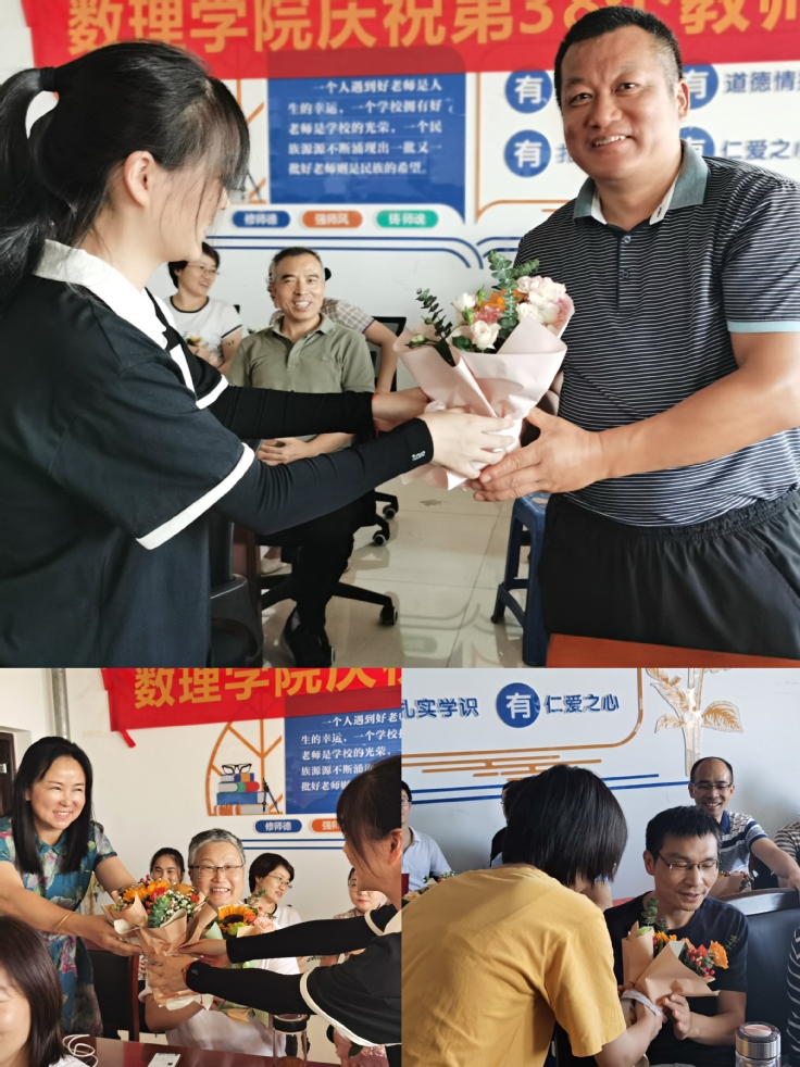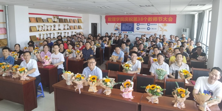 本网讯 九月,有耕耘的甜蜜,更有桃李满园的芬芳。九月,有饱满的果实,更有学生最美好的祝福温暖心房。9月7日,数理学院为庆祝第38个教师节,在实验综合楼1306会议室召开简洁而隆重的庆祝活动。学院全体教师和学生代表参加了此次活动。