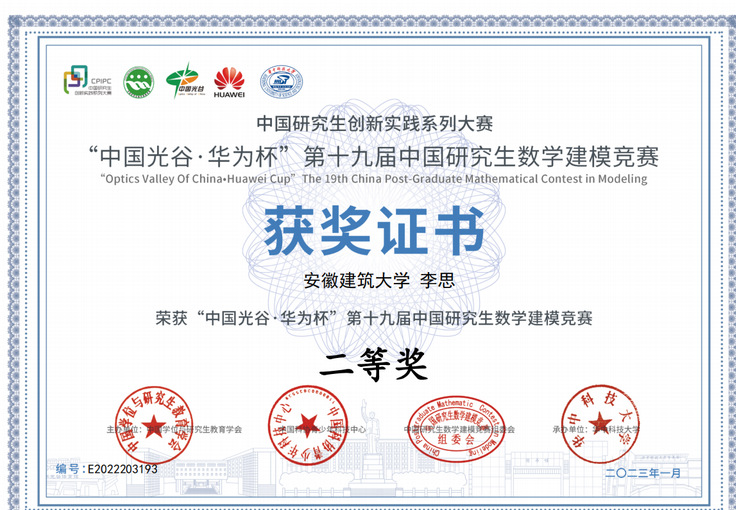 本网讯 2022年“中国光谷Ÿ华为杯”第十九届中国研究生数学建模竞赛结果于近日揭晓,beat365共有26支队伍参赛,其中荣获全国二等奖1项,三等奖2项。本次大赛共吸引国内外共465个研究生培养单位的17970队研究生参赛,一等奖获奖比例仅为1.10%,二等奖获奖比例为13.36%,三等奖获奖比例18.58%,总获奖比例33.03%。
