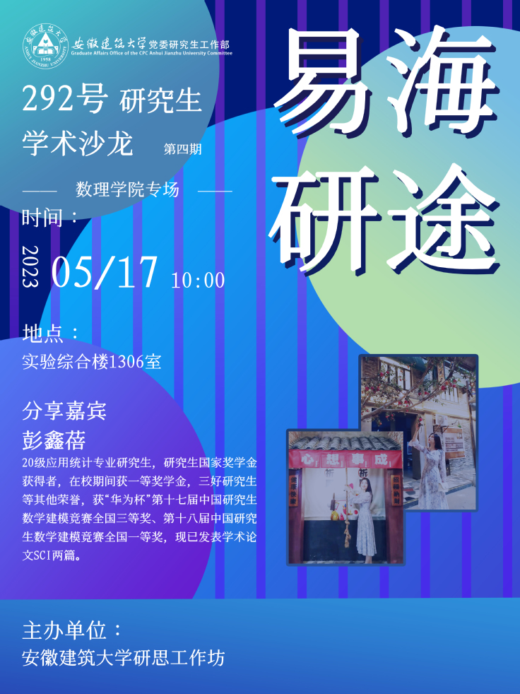 编者按:勤思互荐,同心共研,我们在交流中学习;大道如砥,行者无疆,我们在学习中奋进;红日初升,其道大光,我们在奋进中成长。为助力广大研究生的科研能力和学术水平,以备投身伟大的社会主义现代化建设,beat365在线唯一官网党委研究生工作部特推出“易海研途292号研究生学术沙龙”专栏,邀请各学科领域的专家学者和优秀学子,分享科研竞赛、学术研究中的好经验、好方法,以资互学互鉴、共同进步。