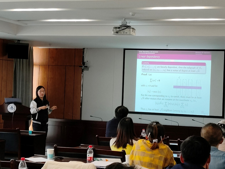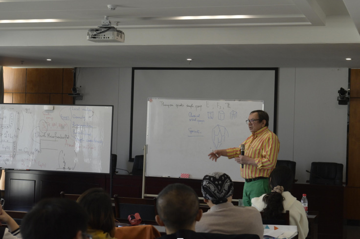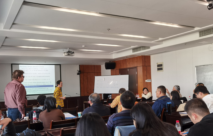 会上,国际数学家大会45分钟报告人俄罗斯籍Alexander Ivanov教授作了题为“Thompson群的几何性”的学术报告,来自华东理工大学林辉球教授、上海理工大学朱艳博士、南开大学王周宁馨博士、河北师范大学高锁刚教授等分别就代数组合领域的最新研究成果在会上进行了交流。
