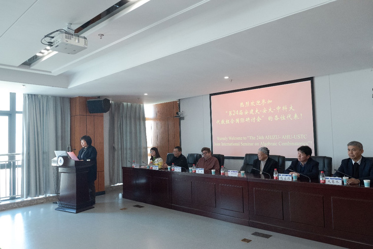 本网讯 11月18日,第24届安建大-安大-中科大代数组合国际研讨会(The 24th AHJZU-AHU-USTC International Joint Seminar on Algebraic Combinatorics)在南校区徽风楼21楼第一会议室隆重召开,来自俄罗斯、荷兰、日本等国的代数组合相关学科专家学者,以及南方科技大学、华东理工大学、南开大学、中国科技大学、安徽大学等三十余名师生代表参加了此次会议,党委常委、副校长李早教授到会并致开幕辞。会议由数理学院谭莹莹教授主持。