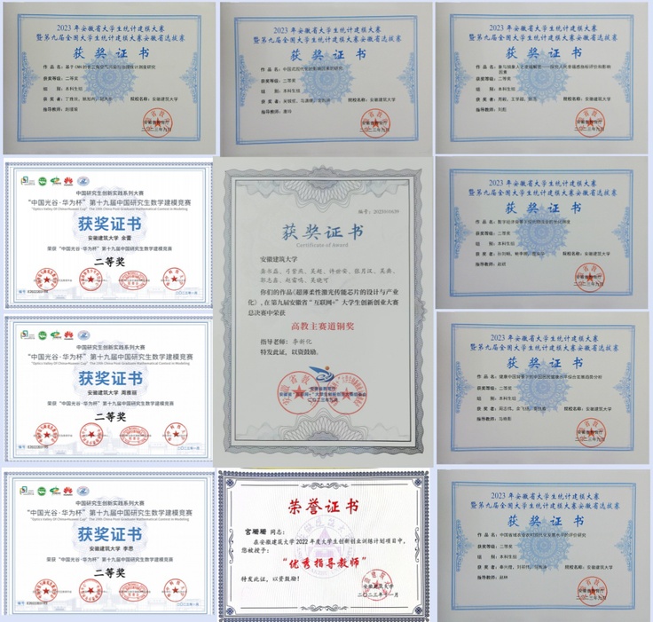 这一年,学院尤其重视教育教学工作,多措并举,实现多项获奖。学院1名教师被授予安徽省劳动竞赛先进个人,并获安徽省五一劳动奖章;13名教师获评安徽省数学建模优秀指导教师;1名教师被评为安徽省教学名师;1名教师获安徽省“青教赛”一等奖;1名教师获校东方节能优秀教师称号;1名教师获校创新比赛一等奖。