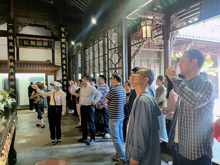 17日下午,学院党委理论学习中心组成员及各教工支部党员赴全国廉政教育基地—包公园开展实践学习活动,先后参观拜谒了清风阁、包公墓、包公祠,感受“文化包公”、领略“文物包公”、了解“历史包公”。随着讲解员的解说,全体参观人员回顾了包公“忠、孝、清、廉”的一生,充分领略了包公清正廉洁、执法严明、铁面无私、不畏权贵的人格魅力,同时还深刻学习了焦裕禄、孔繁森、沈浩等新时期廉政楷模鞠躬尽瘁、死而后已的感人精神。(作者:赵妮,吴钰濛;审稿:胡燕青)