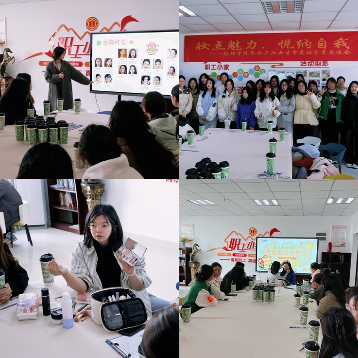 学院以特殊节日为契机,开展独具特色的活动。女生节当日,在1206 教工小家举办美妆分享交流会。活动现场,专业学生亲自示范日常妆容的打造技巧,帮助同学们提升审美能力,学会欣赏自己、接纳自己,以更加自信的姿态迎接未来。
