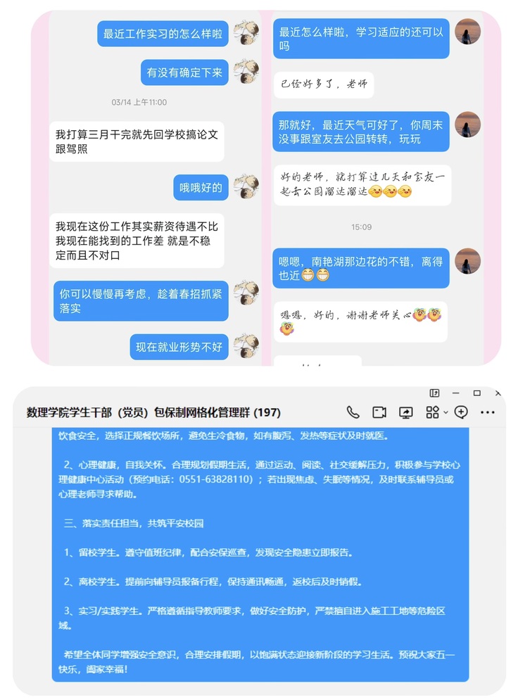 各年级辅导员通过“一对一”深度访谈、深入宿舍走访、全员开展心理普测、一线指导学生心理情景剧表演等方式,及时了解学生在学业、情感、生活以及生涯规划等方面遇到的困惑,并根据实际情况提供精准的咨询服务和有效的资源链接。学院充分发挥学生骨干包保责任QQ群作用,对于可能出现的突发情况,做到第一时间发现、第一时间反馈和第一时间处置。