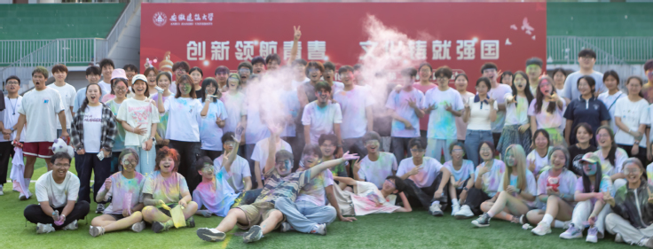 起跑哨响起,同学们奋力向前冲刺,彰显青春活力,在领跑员的带领下,同学们奋力向前冲刺,穿梭于校园中布置的五个彩虹站点,奔向终点。每到一站,学生会的工作人员便挥洒出彩色粉末,将健康、快乐的祝福洒向每一位参与者。抵达终点后,同学们互相泼洒彩粉,脸上都洋溢着灿烂的笑容。最后,同学们通过参与游戏集齐印章后进行套圈活动,获得了学院为同学们精心准备的奖品。