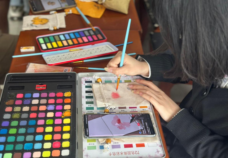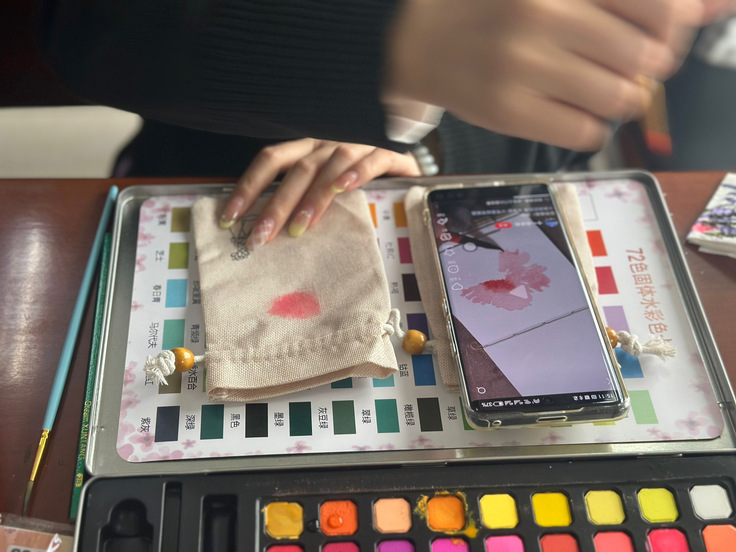 活动分为“巧手包香囊”和“水粉绘创意”两个环节。在包香囊环节中,同学们认真聆听指导,将艾草、薰衣草、丁香等香料细心装入精致的布袋中,一针一线缝制出独具特色的香囊。香囊不仅承载着端午驱邪祈福的美好寓意,更展现了同学们的耐心与巧思。随后的水粉绘画环节,大家充分发挥想象力,在香囊上绘制出龙舟、粽子、山水等充满节日氛围的图案,每一笔每一画都凝聚着对传统文化的热爱与创新。