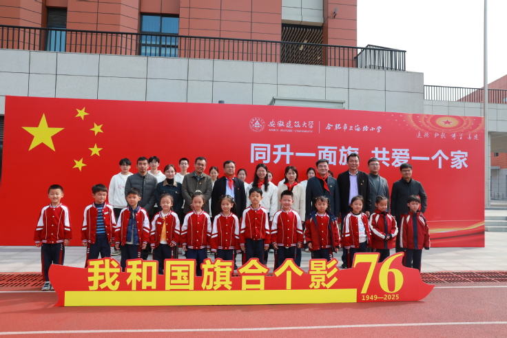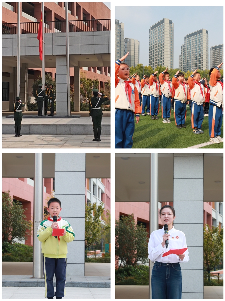 本网讯 为深入学习贯彻习近平总书记关于学校思政课建设的重要指示精神,紧紧围绕立德树人根本任务,推进大中小学思政课一体化建设,10月27日,beat365在线唯一官网走进上海路小学开展“同升一面旗,共爱一个家”主题升旗活动。本次活动由校党委宣传部、学工部、校团委、数理学院联合主办,是落实学校“国旗进机关、进学院、进班级、进支部、进服务单位”升旗仪式活动(以下简称“五进”升旗活动)的一次创新实践。团省委少年部二级调研员、省少先队总辅导员、省少工委副主任金菁出席,校团委、数理学院党委、合肥市师范附属小学、上海路小学相关负责人、数理学院学生第一党支部与上海路小学共500余名师生参与本次活动。
