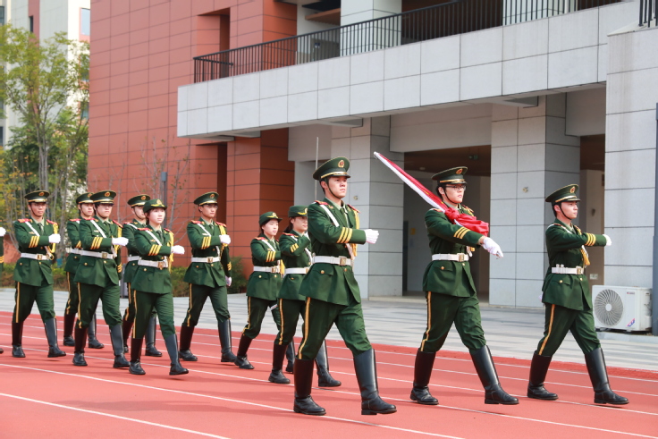 “出旗!”伴随着掷地有声的指令,校国旗护卫队员身姿挺拔、步伐整齐,护送五星红旗庄严入场。“升国旗,奏唱国歌!”当洪亮的口令响彻校园,雄壮激昂的《义勇军进行曲》奏响,全体师生庄严肃立,少先队员行队礼,师生们目光如炬,共同凝视五星红旗在晨光中冉冉升起,以此表达对祖国的深切热爱。