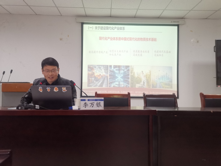 为推动党的二十届四中全会精神在基层落地生根,引导师生党员准确把握全会核心要义,12月10日下午,数理学院于徽风楼1306 会议室举办党的二十届四中全会精神专题宣讲会,校党委宣讲团成员、马克思主义学院党总支书记李万银主讲,学院全体师生党员参会学习。会议由学院党委书记胡燕青主持。