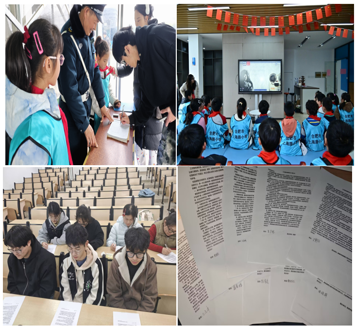 结合“雷锋月”契机,学院与上海路小学创新开展“大手牵小手 文明校园行”主题实践活动,活动设置“今天我当‘你’”岗位体验环节,组织大学生与小学生共同体验宿舍管理、校园安保、图书管理等校园服务岗位,在亲身体验与角色转换中,深刻感悟平凡岗位的奉献与坚守。此外,活动还组织观看雷锋事迹纪录片与生态文明宣传片,并以此为契机,在各班级同步开展文明倡议承诺书签订活动,引导师生将文明意识融入日常、化为行动,激励大家自觉成为文明校园的倡导者、践行者与传播者。