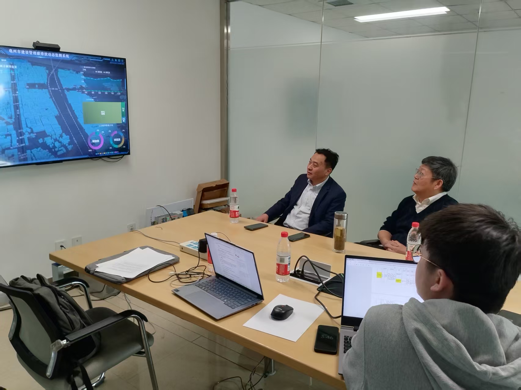 会上,方潜生教授通报了项目及课题四的整体进展,并介绍了即将开展的第二轮里程碑考核要点。与会人员围绕课题及各任务的研究进展、阶段性成果及后续工作安排进行了汇报与交流。中国建研院丁天一博士现场演示了示范工程“亳州市建设管理碳排放动态监测软件系统v1.0”,重点展示了碳排放动态监测、核算、预测、预警及评价等核心功能。方潜生教授在总结点评中,对课题任务完成情况予以肯定,并对5月份的第二轮里程碑考核及示范工程现场验收等工作作出全面部署,要求各单位协同攻关,确保项目顺利通过验收。