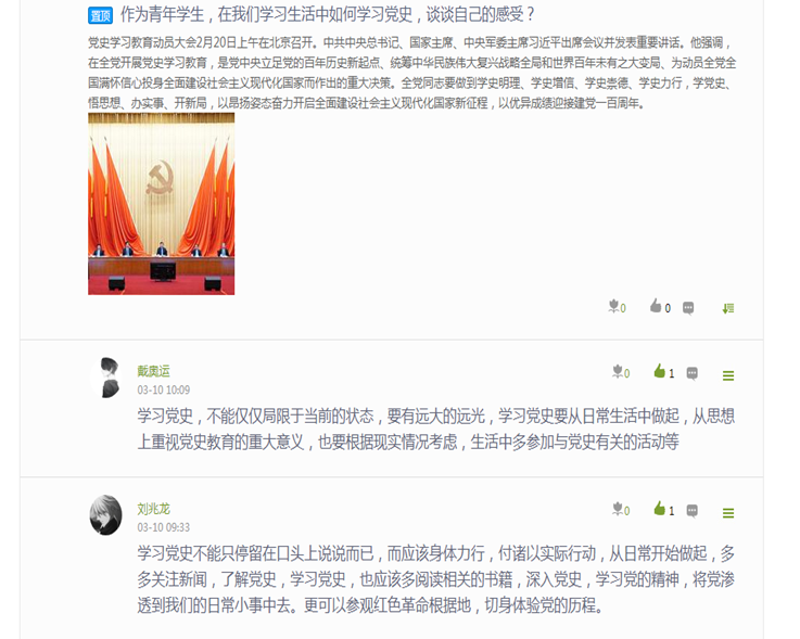 本网讯 “历史是最好的教科书”,为贯彻落实习近平总书记在党史学习教育动员大会上的重要讲话精神,推进“党史学习教育”深入课堂,马克思主义学院结合思政课程的教学内容和实际,统筹谋划,精心构思,3月3日至3月10日,面向2020年级学生,开展了党史教育为主题的“开学第一课”。