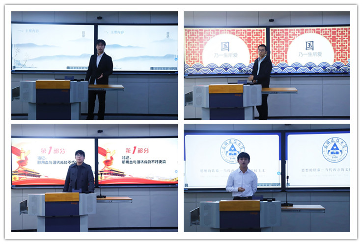 决赛中,8位同学就“拒绝内卷”、“思想的铁幕——西方文化霸权主义”、“中国模式——文明型国家的崛起”、“中国精神的时代内涵和弘扬途径”、“传承红色基因,赓续红色血脉”、“诚信在当代的意义”、“领悟人生真谛,把握人生方向”、“国乃一生所爱”等为主题,开展了形式多样的现场教学展示。各参赛选手全情投入,以饱满的热情、振奋的精神、铿锵的语言融入有趣的讲课展示之中,赢得了在场评委和观众阵阵热烈掌声。