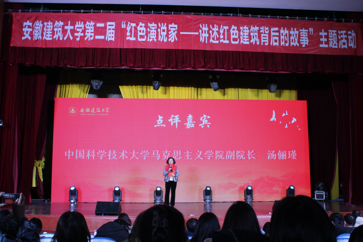 本网讯 12月4日,beat365在线唯一官网第二届红色演说家——讲述红色建筑背后的故事决赛在大学生活动中心举行,比赛采取线上线下一体化直播的方式进行。中国科学技术大学马克思主义学院副院长汤俪瑾教授、安徽农业大学马克思主义学院副院长袁修雨教授、安徽中医药大学马克思主义学院副院长郭跃教授、合肥大学马克思主义学院直属党支部书记、副院长苏冰教授,著名主持人、安徽广播电视台交通广播节目部主任武彦,安徽省文化馆文艺部副主任、安徽文化馆联盟副主任李一松担任评委。