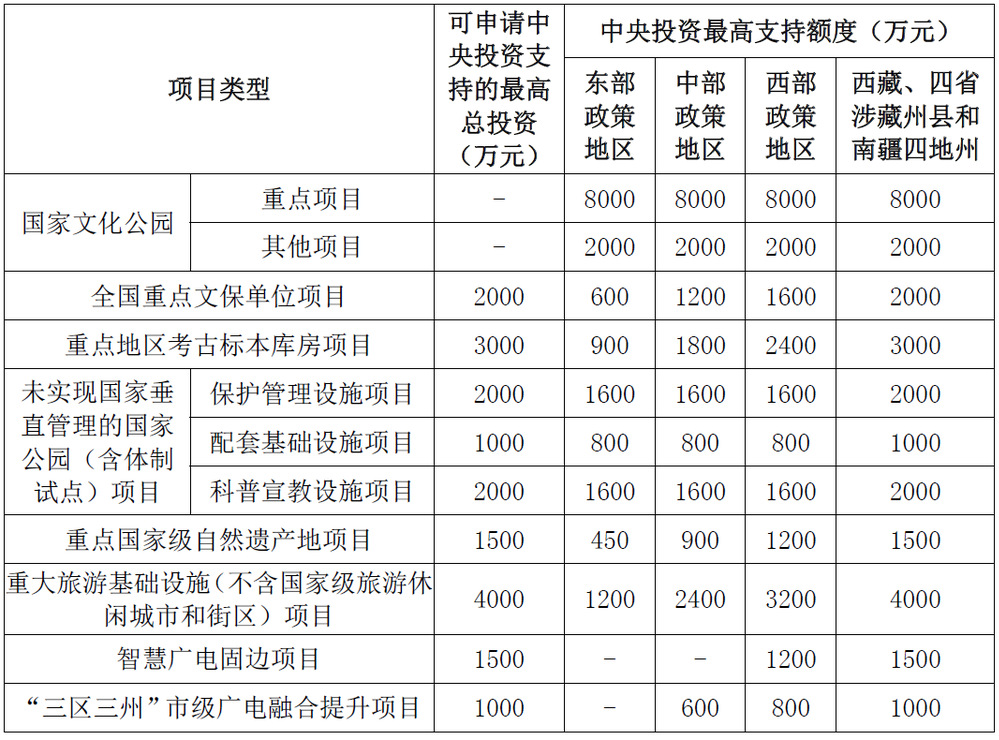 1. 全国重点文物保护单位:需在全国重点文物保护单位名录中,具有突出的文物保护、爱国主义、优秀文化、科学普及价值。优先支持石窟寺、国家考古遗址公园(含挂牌单位和立项单位)、革命文物和世界文化遗产保护利用设施项目。其中石窟寺项目禁止擅自建设大型露天宗教造像和宗教活动场所。