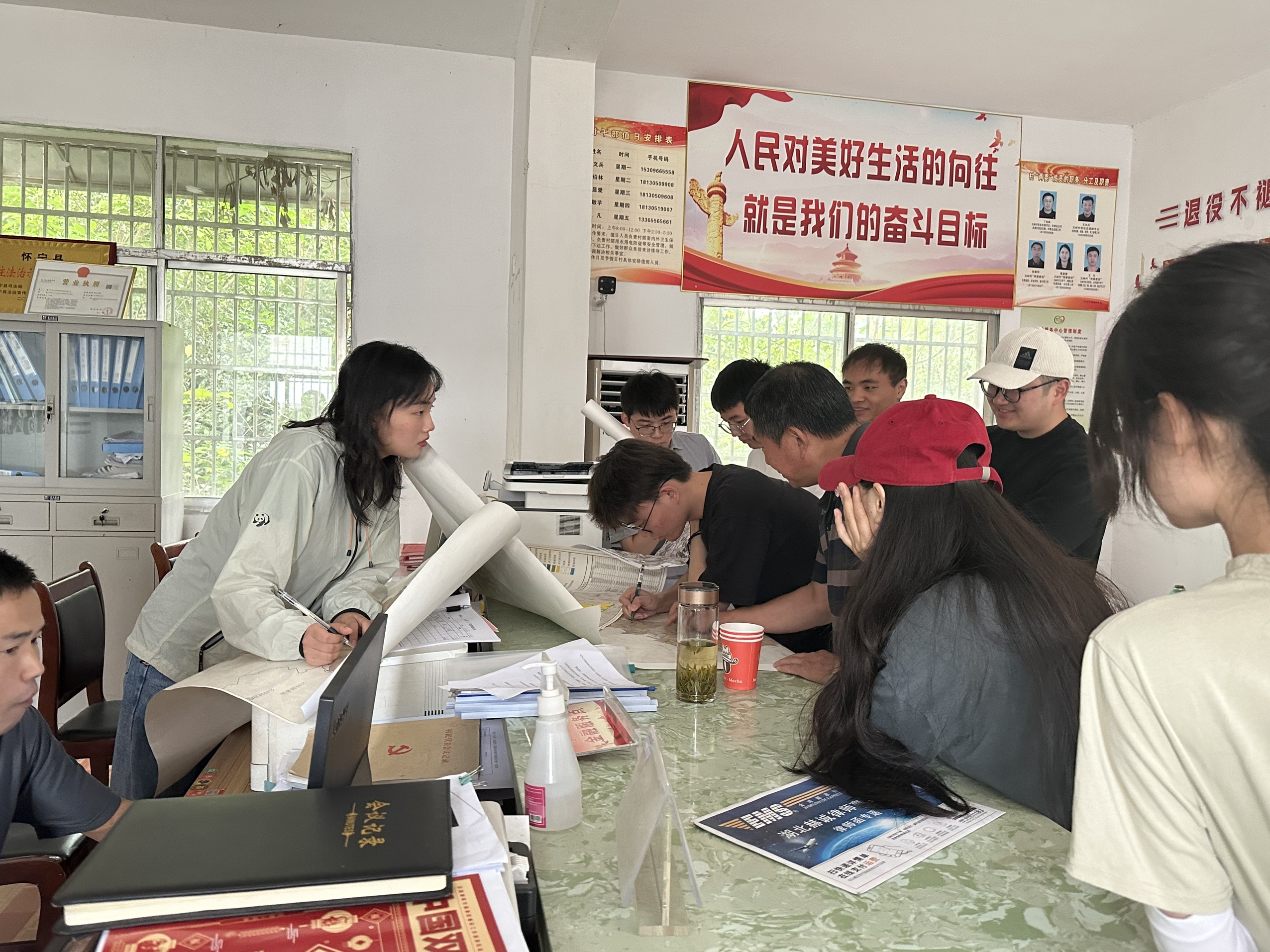 当日午后至隔日,师生团队在相关人员陪同下进行分组调研,秉承着“认知乡村、寻问乡村、振兴乡村”的理念,就五岭村道路规划、引水渠道规划、产业园区规划、公共服务设施规划、工业用地规划、居民聚集区规划、农田小田改大田整治提升、人居环境设计提升等内容开展现场踏勘与信息收集,为乡村规划设计采集了关键数据和重要资料。通过走访和发放调查问卷的方式深化影响因素的科学调研与分析,切实发挥beat365暑期“三下乡”优良传统,彰显暑期“三下乡”的品牌特色。以每日的方案讨论会实现组间信息数据及时流动交互,为整理、优化调研成果及落实公岭镇规划建设添砖加瓦提供基础和活力。
