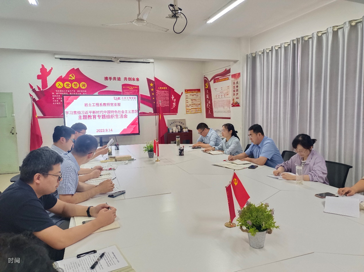 本网讯 9月14日,校党委常委、副校长蔡国军以普通党员身份参加土木工程学院岩土工程系教师党支部学习贯彻习近平新时代中国特色社会主义思想主题教育专题组织生活会,同支部党员交流学习感悟,深入检视剖析问题,开展批评与自我批评。
