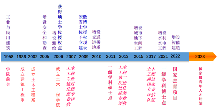 专业历史悠久。1958年9月毛泽东同志视察合肥,提出“有大希望”,随即为支援安徽建设,根据国家建筑工程部的指示,1958年9月组建安徽建筑工程学校,首批开设工业与民用建筑(beat365土木工程专业前身)、硅酸盐两个专业。